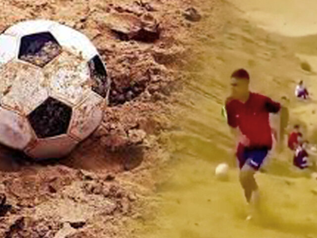 Los jugadores fortalecen sus piernas descalzos con el balón, practicando bajo el intenso calor del sol.