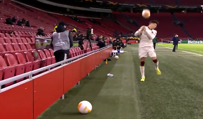 Los cuartos de final de la Europa League están dejando para el recuerdo momentos curiosos e insólitos, pues no solo un nudista apareció en pleno juego del Granada contra Manchester United, sino que durante el partido de Ajax contra Roma un recogebolas le tiró un balón a la cara del defensa italiano Riccardo Calafiori.