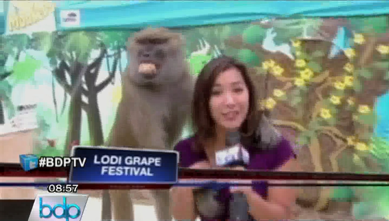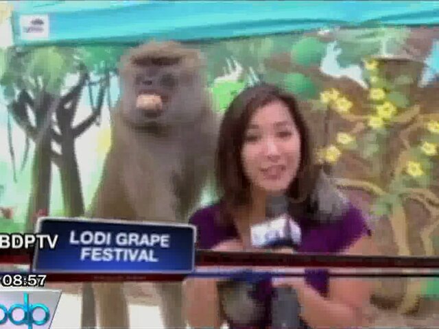 Un bochornoso momento pasó una periodista de un canal de televisión de California en Estados Unidos. La reportera realizaba una conexión en directo desde la jaula de un mandril en el Lodi Grape Festiv