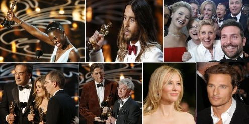 Pese a que la cinta "Gravity" arrasó con muchos de los premios entregados en la gran noche del cine, el Óscar a "Mejor Película" se lo llevó la película producida por Brad Pitt y dirigida por Steve McQueen "12 years of slave". El primero en recibir la estatuilla fue el actor y cantante Jared Leto por su interpretación en "Dallas Buyers Club", seguido por la actriz Lupita Nyong'o, quienes conmovieron a los asistentes con sus discursos. Además, el "Mejor Actor" se lo llevó Mathew McConaughey por la misma película que Leto. Otra de las más resaltantes fue la cinta animada "Frozen", la cual se llevó el premio a "Mejor canción" por el tema "Let it go".
