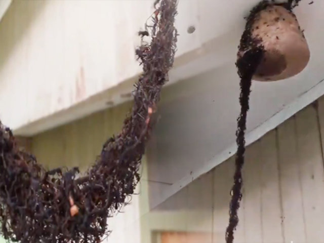 Como quedó registrado las hormigas utilizaron sus propios cuerpos para formar la construcción del puente y alcanzar, de esta manera, un nido de avejas que colgaba del alero de una casa.