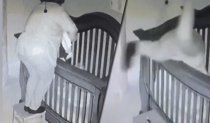 El video fue captado por una cámara de seguridad de la habitación del bebé, afortunadamente el menor no sufrió daño alguno y todo no pasó de ser un gran susto.