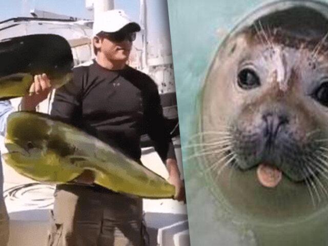 Foca le arrebata a pescadores un pez gigante recién capturado
