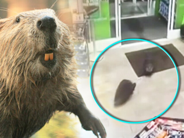 La cámara de seguridad de una tienda en la ciudad estadounidense de Fitchburg, Massachusetts, recogió el curioso momento en que una pareja de castores entra tranquilamente por las puertas automáticas del local comercial y comienza a buscar alimento.