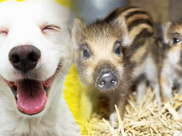 Amor viral: Perrita adopta dos pequeños jabalíes