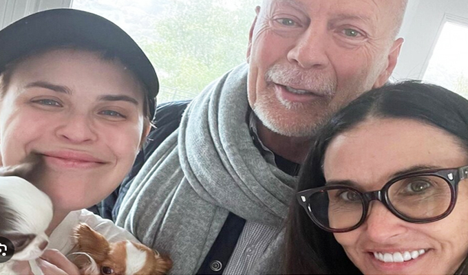 Bruce Willis celebra sus 69 años junto a su exesposa Demi Moore y su actual pareja