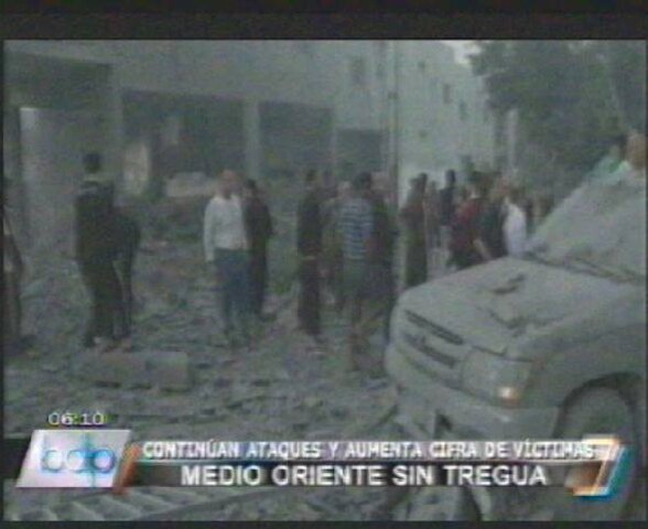 Los ataques del ejército hebreo sobre territorio palestino no han cesado pese a los intentos de la Secretaria de Estado norteamericano Hillary Clinton para encontrar una solución a este conflicto. Anoche un misil israelí impactó sobre la sede del medio televisivo Al Jazeera y otro destrozó un vehículo donde viajaban dos reporteros palestinos que murieron instantáneamente.