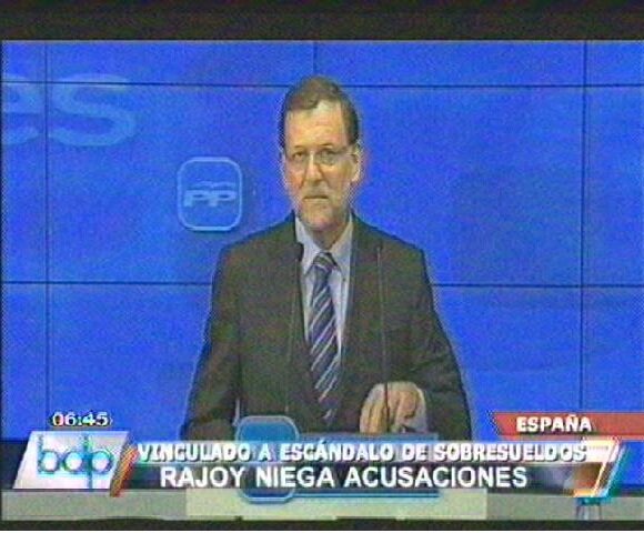 El presidente del Gobierno español, Mariano Rajoy, continúa en la mira debido a que estaría implicado en un escándalo de sobresueldos. Niega los cargos y asegura que las retribuciones a personal del partido se realiza conforme a ley.