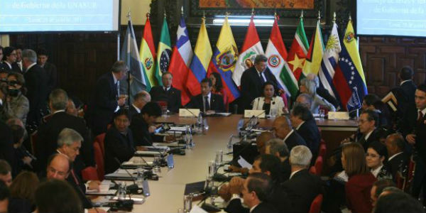 Alrededor de la 1:15 am, los presidentes miembros de la Unasur reunidos en Palacio de Gobierno emitieron un comunicado donde saludan a Nicolás Maduro por su elección como presidente de Venezuela e instan a los sectores que participaron en las elecciones a respetar todos los resultados emanados por el Consejo Nacional Electoral (CNE)