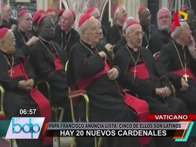 Cinco latinoamericanos son parte de los 20 nuevos cardenales. Un colombiano, un panameño, un uruaguayo, mexicano y un argenino son los latinos elegidos por el Papa Francisco.