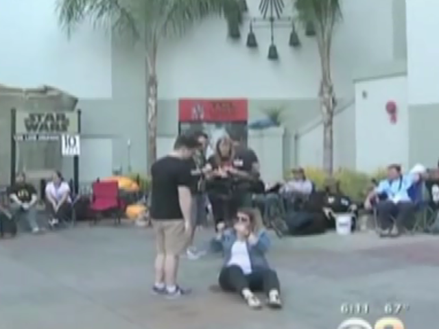 Faltan pocos días para el estreno de “Star Wars: The Force Awakens”, por ello los fanáticos ya acampan frente al TCL Teatro Chino Imax en Los Ángeles. Los dueños de las instalaciones permiten a los fans colocar sillas y casas de campaña, además del acceso a los servicios sanitarios para hacer menos pesada la espera. La nueva cinta se estrenará en Hollywood la próxima semana.