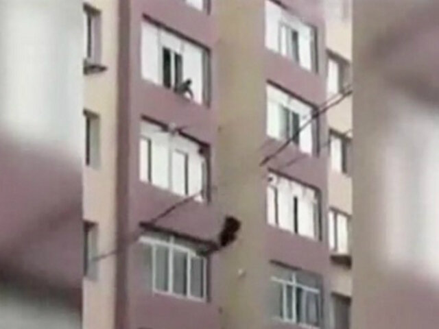 En China, una mujer saltó desde el cuarto piso de un edificio luego de pelear con su esposo por más de una hora. La caída fue registrada por una cámara de video.