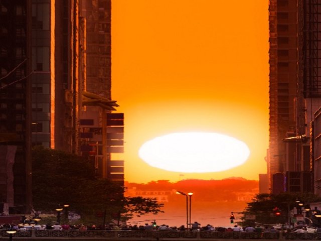 Este atardecer en el que el sol se pone sobre la línea de las avenidas principales de la isla neoyorquina sucede sólo dos veces al año.