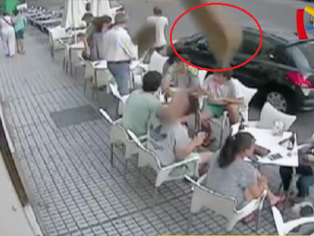 El hecho ocurrió cuando estas personas disfrutaban de unas cervezas en una de las terrazas de un establecimiento en la ciudad de Badajoz. En las imágenes se observa los precisos instantes en los que ladrillos, arena y concreto caen sobre los comensales.