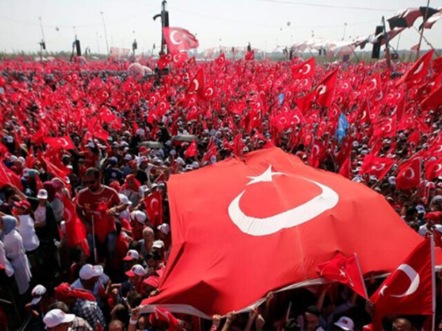 Un mar de banderas turcas cubrió la plaza del barrio de Yenikapi, en Estambul, donde millones de personas participaron de una manifestación prodemocracia en apoyo al presidente Recep Tayyip Erdogan tras el golpe de estado fallido que dejo más de 270 muertos.