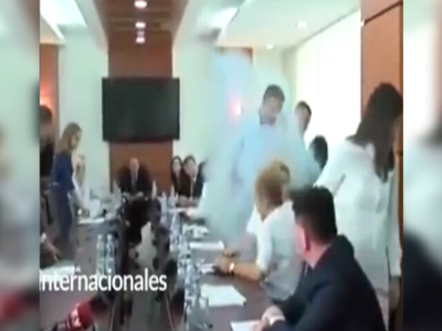 La sesión de una comisión del parlamento de Kosovo fue abruptamente interrumpida luego que un congresista ingresara a la sala lanzando gases lacrimógenos.
