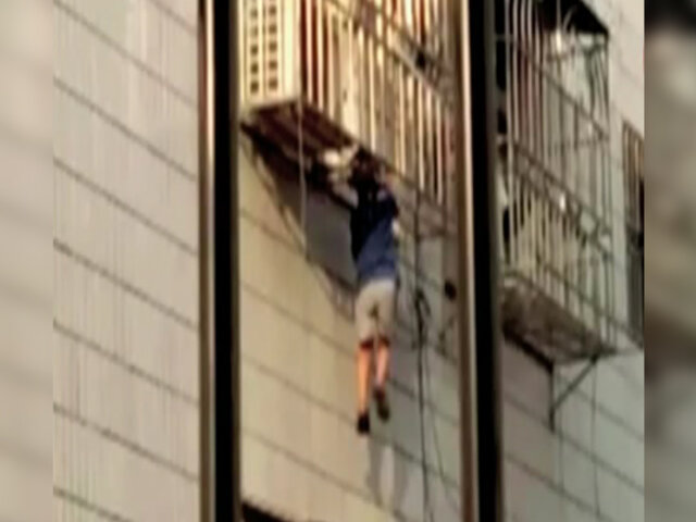 Un video registrado en China muestra el dramático rescate a un pequeño que quedó atrapado en las rejas de una ventana, a más de 20 metros de altura.
