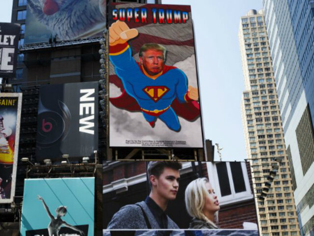 EEUU: ‘Súper Trump’ aparece en el Times Square