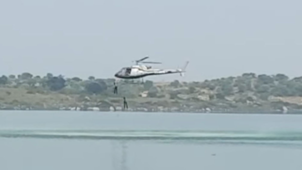 Se trata de los dobles de acción en la película "Maastigudi”, quienes se lanzaron desde un helicóptero hacia un lago.