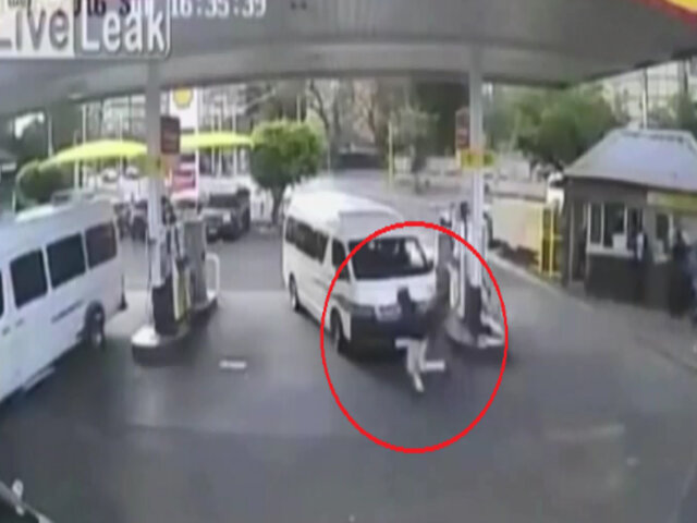 El trabajador de una gasolinera por poco pierde la vida tras ser brutalmente atropellado por un automóvil fuera de control.