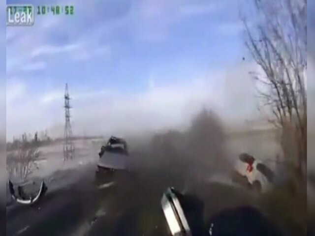 Dos vehículos colisionaron y un tercero resultó afectado en una transitada carretera de Kazajistán.