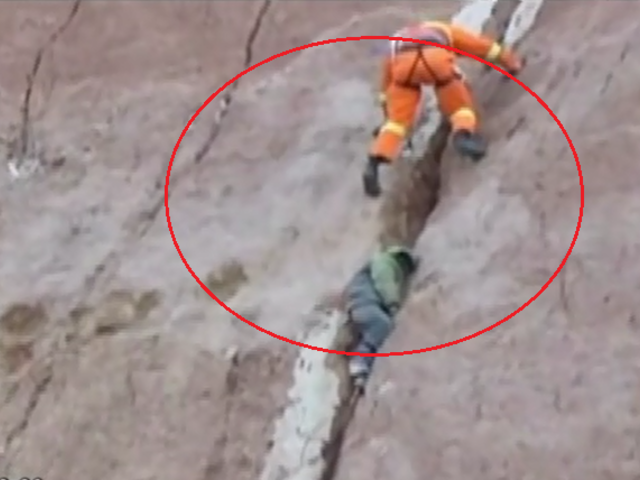Un equipo de emergencia en China llevó a cabo una arriesgada maniobra para salvar un niño que había caído por un acantilado. El menor quedó atrapado en una grieta a más de 40 metros del suelo.