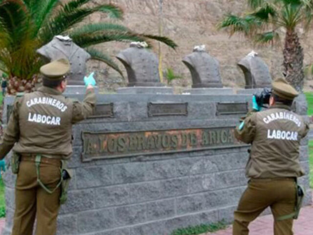 Los carabineros (Policía de Chile) investigan el atentado que sufrieron los monumentos a los Héroes del Morro, en Arica. Desconocidos cortaron las cabezas a los cuatro bustos de militares chilenos que destacaron en la Guerra del Pacífico con Perú.