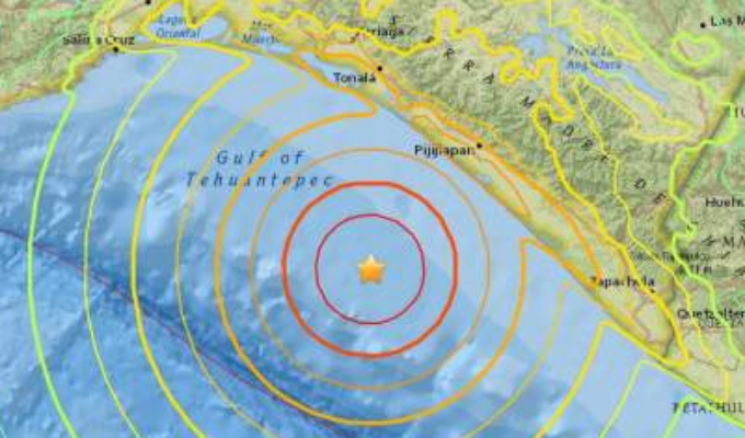 Asimismo, señaló que el epicentro fue de 165 kilómetros al oeste de Tapachula, en el estado sureño de Chiapas a 35 kilómetros de profundidad, según AP.