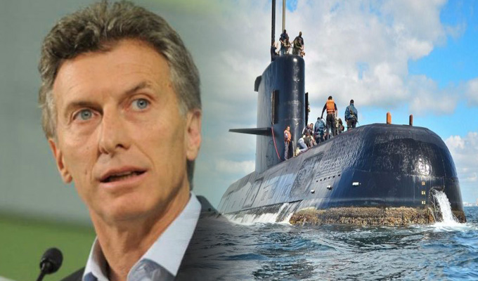 En Argentina, el presidente Mauricio Macri, ofrecerá un mensaje televisado y declarará un duelo nacional por tres días debido a la desaparición del submarino “ARA San Juan” y sus 44 tripulantes en el Atlántico sur. Un portavoz de la armada argentina indicó que la fuerza naval explora indicios a 700 metros de profundidad y otros a 950 metros, luego de descartar el sábado que una formación con las dimensiones aproximadas del submarino registrada a 477 metros de profundidad fuera el “ARA San Juan”.