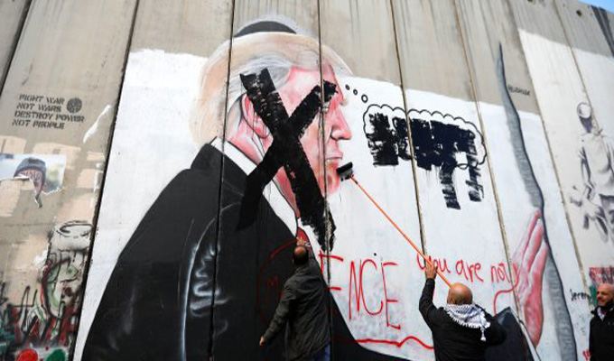 Cisjordania: tachan mural de Donald Trump como señal de protesta