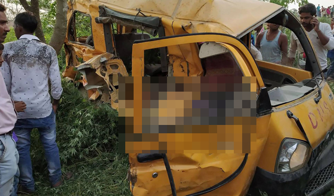 El vehículo escolar llevaba 22 alumnos de entre ocho y diez años y chocó con un convoy en el distrito de Kushinagar, en el Estado norteño de Uttar Pradesh.