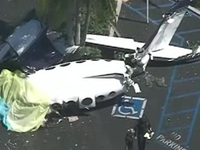 La aeronave se precipitó en el estacionamiento del centro comercial Costa Mesa, en Los Ángeles.