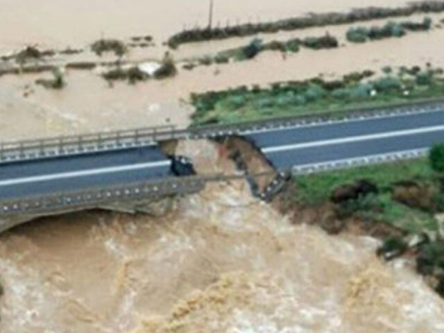 En Italia, las lluvias torrenciales han provocado el derrumbe de un puente que atravesaba el río santa lucía, situado en la isla de Cerdeña. Tras el incidente no se han reportado víctimas que lamentar, pues la policía había cerrado el tránsito como medida de precaución.
