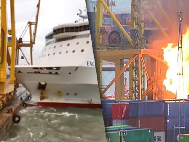 En España, un barco de carga chocó contra el Muelle Sur del Puerto de Barcelona cuando salía de la instalación y provocó la caída de una grúa de las que operan en la terminal de contenedores, provocando un incendio afectó a 50 contenedores.