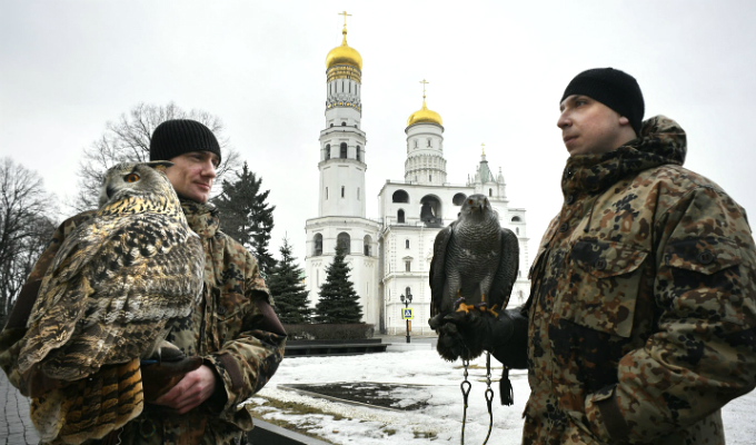 Una unidad especial de aves rapaces resguardan el kremlin, palacio presidencial de Rusia donde se encuentra Vladimir Putin. Un gavilán y un búho, se encargan de cuidar los invernaderos para evitar el anidamiento de cuervos.