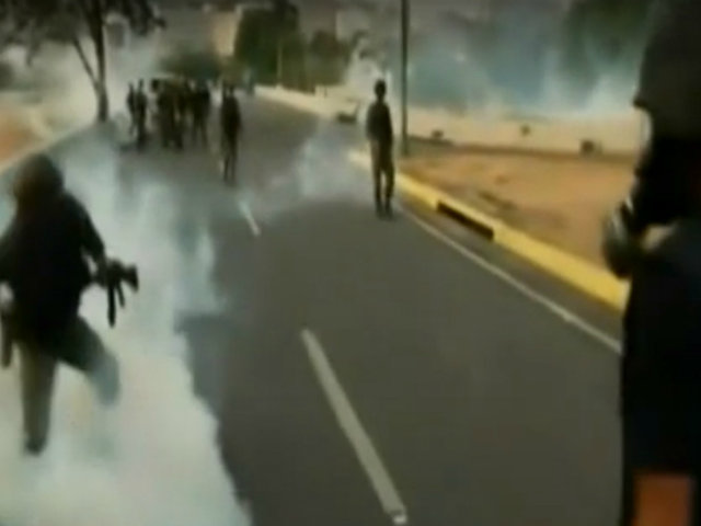 Debido a ello, las fuerzas de seguridad venezolanas de Maduro lanzaron bombas lacrimógenas contra el líder opositor, que estaba acompañado por militares a favor de un levantamiento contra el régimen.