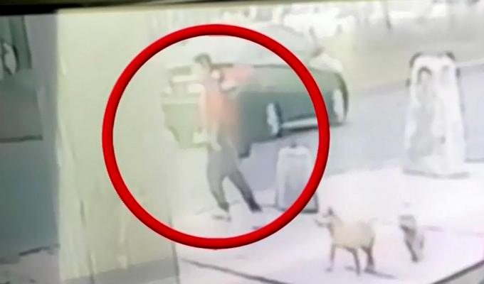 Cámaras de seguridad captaron el preciso momento en que el escolar cruza la vía y luego es impactado por el vehículo. Debido al fuerte impacto, el menor salió volando por los aires algunos metros más delante de la pista.