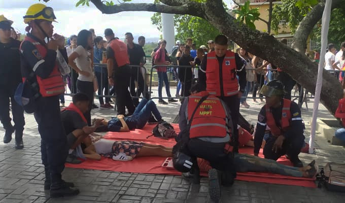 Paramédicos del Ministerio de Transporte Terrestre, Protección Civil y Bomberos del Distrito Capital acudieron al centro de recreación para auxiliar a los jóvenes, que no esperaron la apertura del parque y decidieron saltar la cerca principal provocando la estampida.