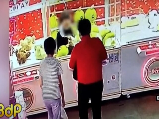 En las imágenes se observa a la menor ingresando por una ranura para intentar alcanzar un peluche e inocentemente quiere cogerlo sin saber que minutos después no podría regresar.
