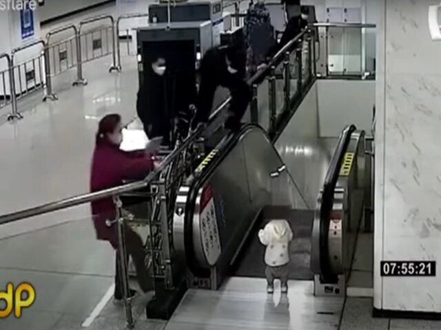 La rápida acción de un guardia de seguridad evitó que un niño caiga por una escalera mecánica. Esto sucedió cuando la madre intentó pasar con el coche por las barras de seguridad pero de un momento a otro soltó al niño.