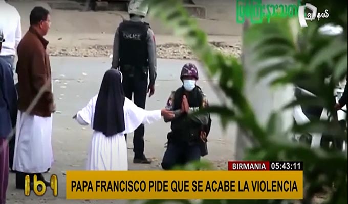 El Sumo Pontífice se unió la pedido de una monja en Birmania, quien se arrodilló ante los militares para evitar que disparen contra los manifestantes.