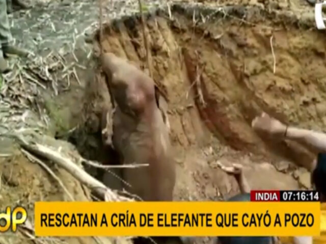 Un grupo de rescatistas realizaron denodados esfuerzos por recuperar a una cría de elefante que cayó a un estrecho pozo durante la noche. El hecho ocurrió en una Reserva natural de la India.