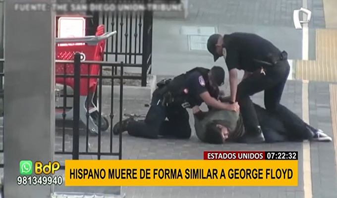 El hecho ocurrió en San Diego, Estados Unidos, cuando detuvieron al hispano por merodear en las vías del tren. Los agentes lo detuvieron, esposaron y le colocaron la rodilla en el cuello por más de seis minutos hasta asfixiarlo.