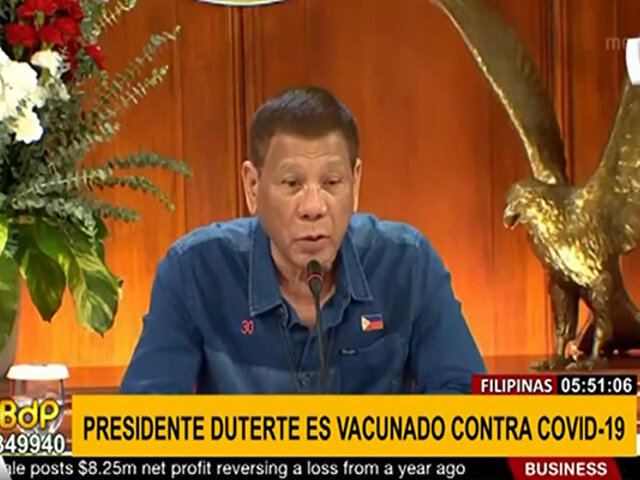 Filipinas: presidente se vacunó contra el COVID-19 para animar a la población a inmunizarse