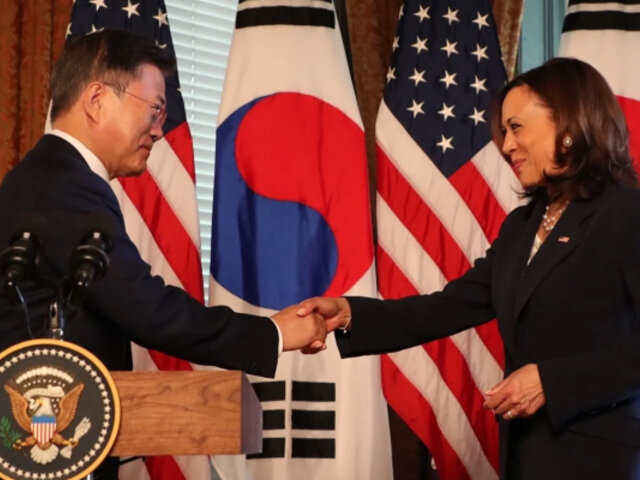 Como se observan en imágenes, Harris se da un apretón de manos con Moon e inmediatamente se la secó en su chaqueta. Usuarios en redes criticaron su actitud y la tildaron de irrespetuosa.