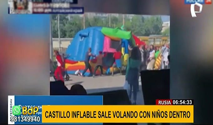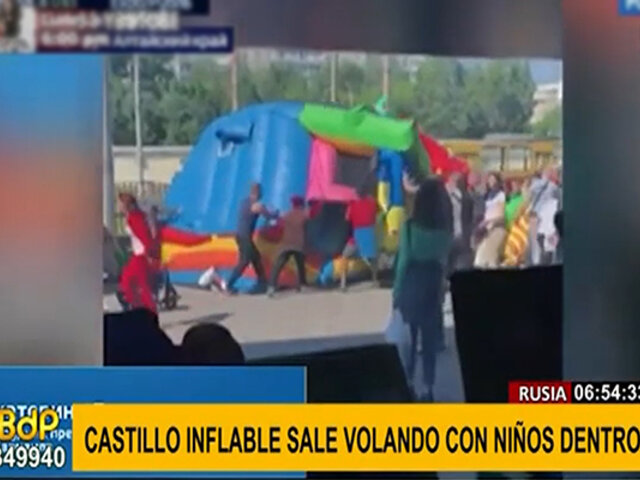Los fuertes vientos en Rusia causaron que un castillo inflable termine elevándose por varios metros en el aire cuando había niños en su interior, causando desesperación de los padres y transeúntes.