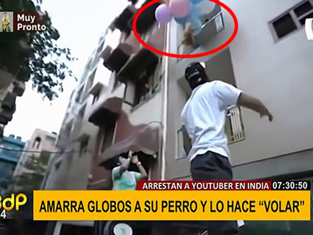 Increíble. En la India, un reconocido ‘youtuber’ fue arrestado por amarrar a su perro con varios globos rellenos de gas helio y lo hizo volar por los aires, al mismo estilo de la película “Up”.