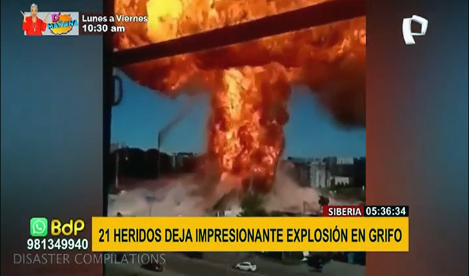 Más de 21 personas heridas dejó una gran explosión en una gasolinera de Siberia, Rusia, cuando se abastecía un vehículo de combustible al mismo tiempo que un camión descargaba gas licuado en los tanques del grifo.