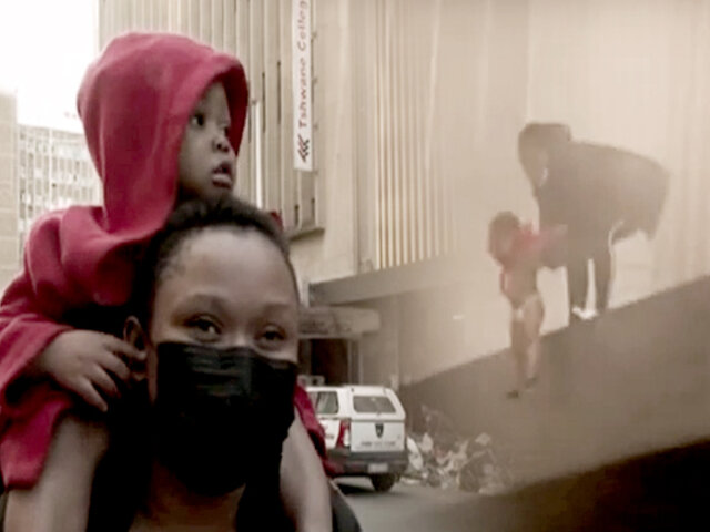 Sudáfrica: salvan a bebé lanzándola del segundo piso de supermercado en llamas