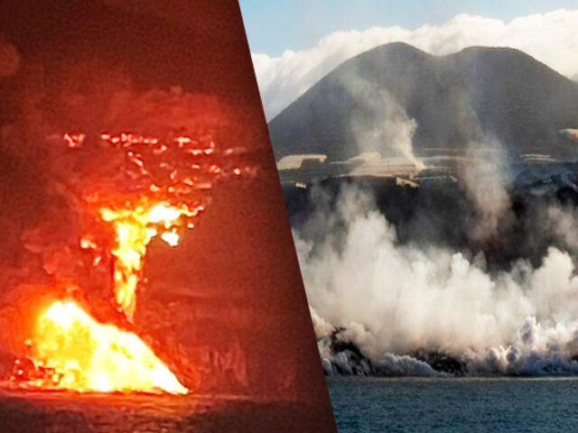 ¡Imágenes impresionantes!: Lava del volcán de La Palma llegó al mar generando nubes toxicas